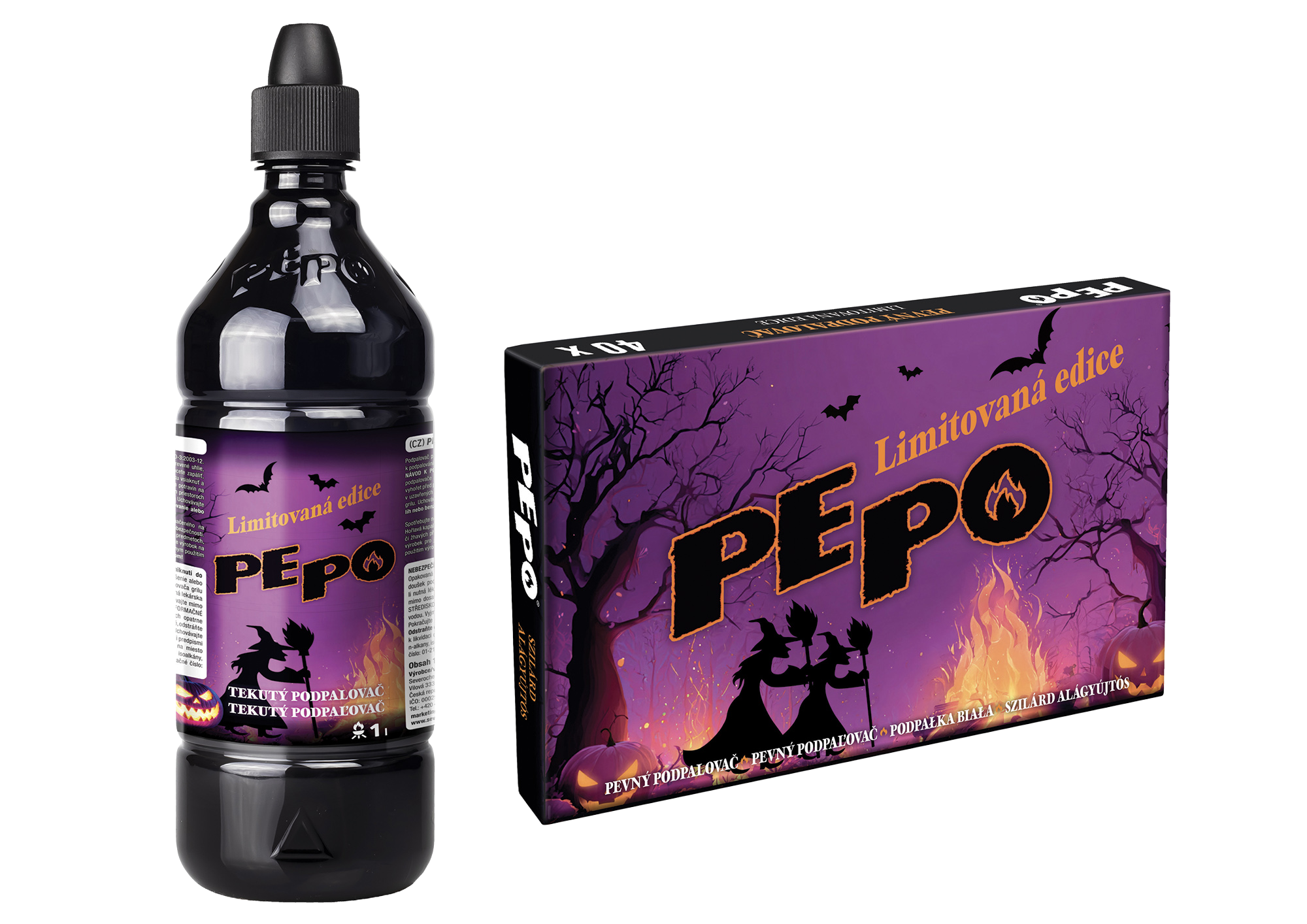Pro rok 2026 je pro zákazníky připravená nová grafika limitované čarodějnické a Halloweenské edice pevného a tekutého podpalovače PE-PO. K dispozici např. v řetězcích OBI, Bauhaus, Hornbach, Globus atp.